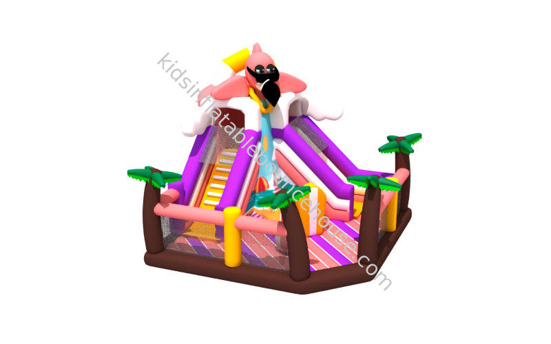 2.열대 낙원의 활기찬 에너지를플라밍고 비치 테마 펌플이 가능한 재미있는 도시이 눈길을 끄는 상업용 부풀이기는플라밍고와 참나무 디자인, 어린이와 가족이 좋아할 축제적인 해변 분위기를 만듭니다.