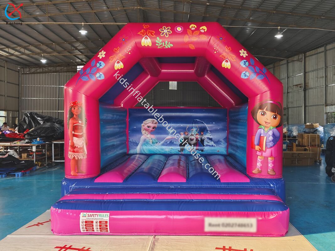 상업용 및 어린이 엔터테인먼트용으로 특별히 설계된 생동감 넘치는 핑크색 공주 테마를 갖춘 전문가급 풍선 바운스 하우스입니다.