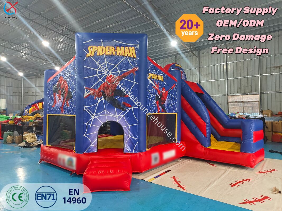 • 좋은 스파이더맨 슬라이드 슈퍼히어로 점프 캐슬과 함께 부풀이 반짝이는 집