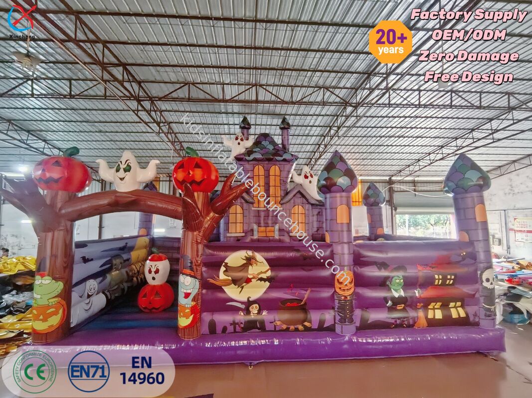 상업용 해피 할로윈 호박 대형 에어바운스 슬라이드 펀시티